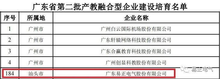 根据《广东省人民政府办公厅关于深化产教融合的实施意见》(粤府办〔2018〕40号)以及《广东省建设培育产教融合型企业工作方案》要求,我委会同省教育厅、工业和信息化厅、人力资源社会保障厅、国家开发银行广东省分行等部门开展了第二批产教融合型企业评审相关工作。经各地级以上市发展改革部门及省属高职、职业院校(含技工院校)推荐、专家评审、部门复核、信用核查,我司入选广东省第二批建设培育产教融合型企业名单。